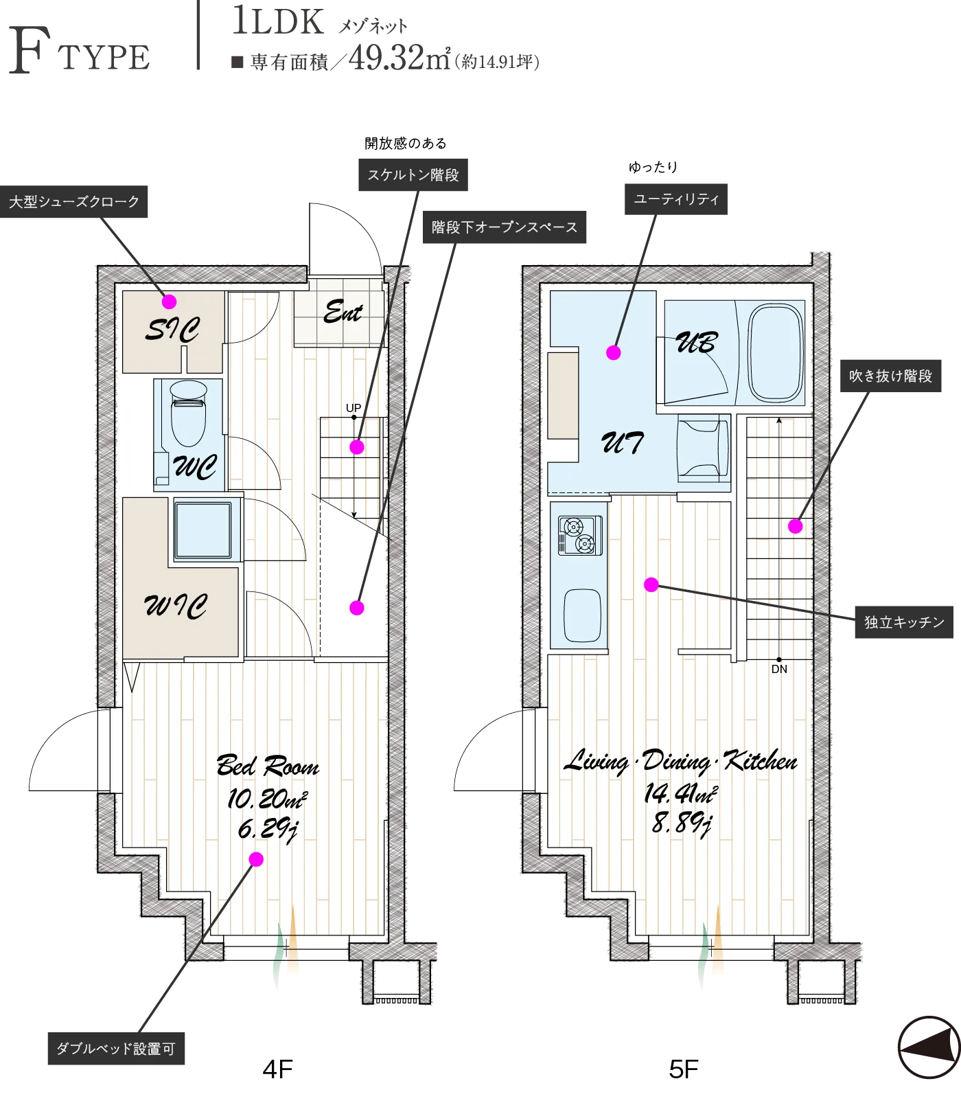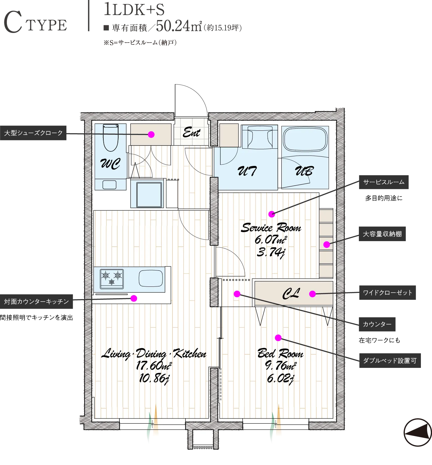 1LDK+S(50.24㎡)、1LDKメゾネット(49.32㎡~56.16㎡) - 竣工予定